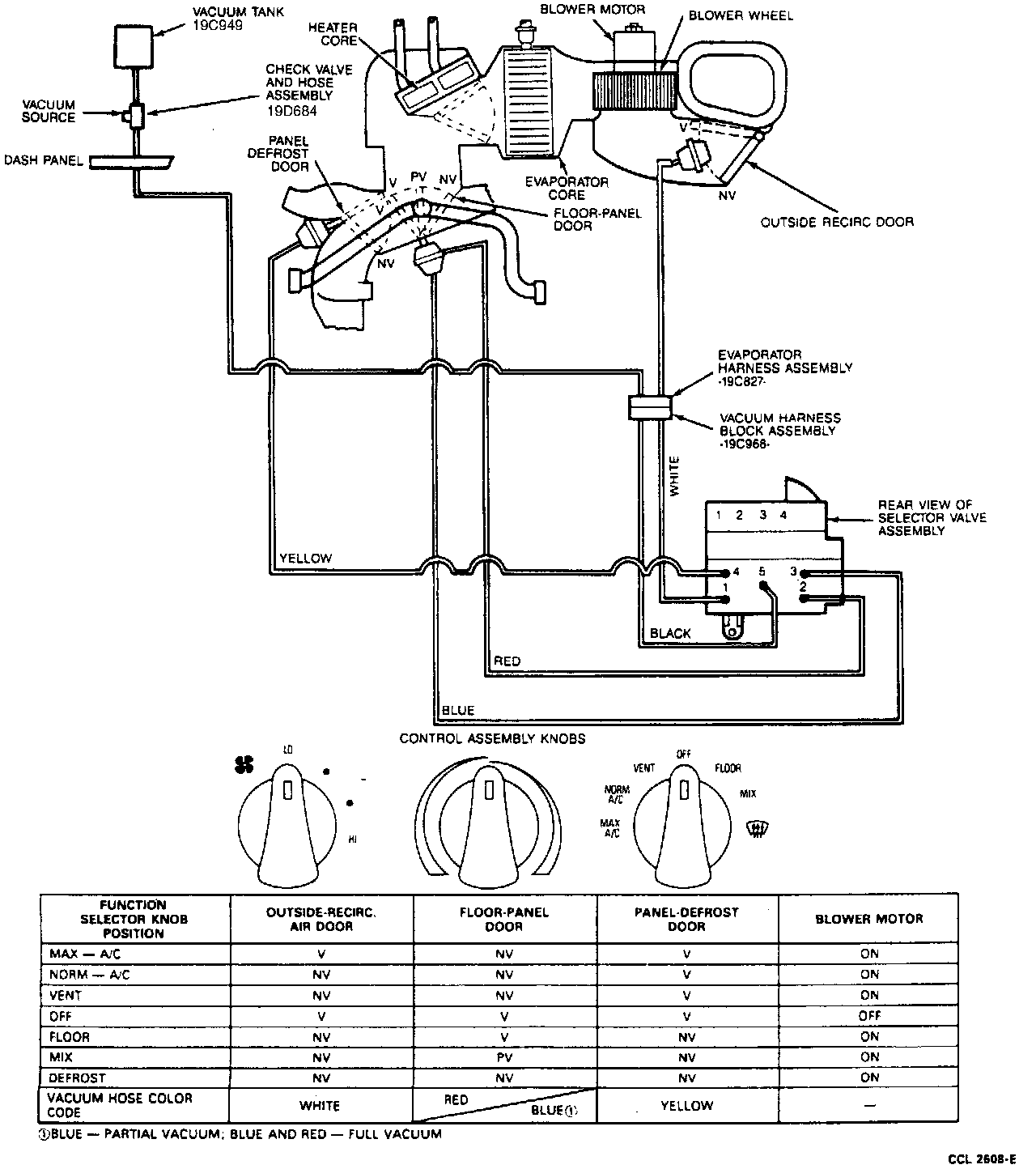 b. Two internal single pole electrical switch are also controlled by the selector. The combination of these electrical switches control the electrical supply to the A/C clutch and blower switch.