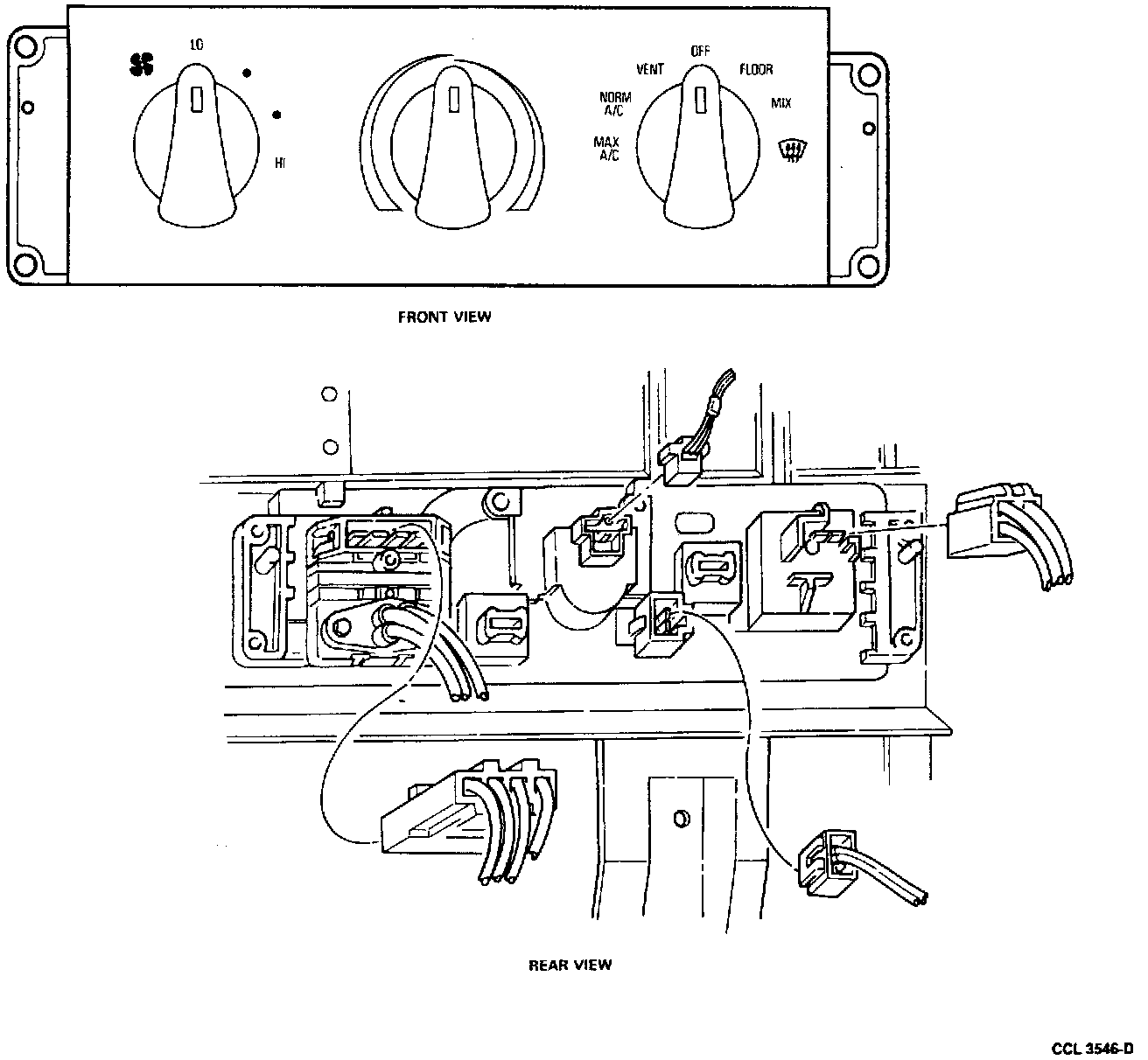3. Remove the four screws attaching the control assembly to the instrument panel.