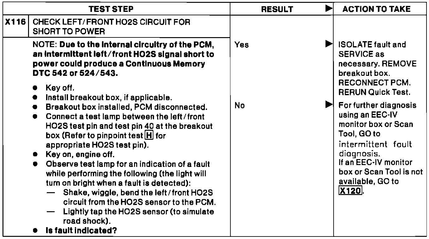 X116 - Check Left Front HO2S Circuit For Short to Power