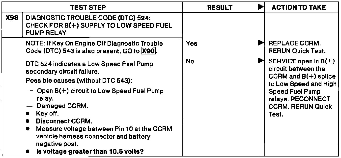 X98 - Code 524: Check For B+ to Low Speed Fuel Pump Relay