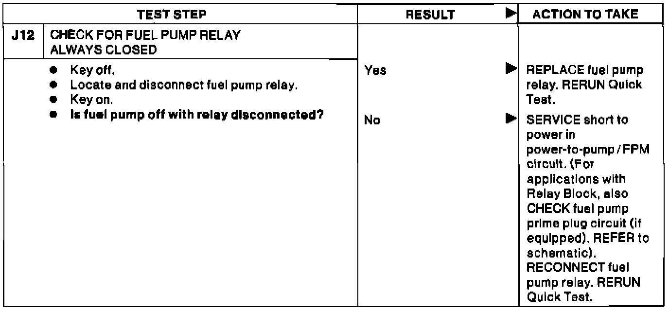 J12 - Check For Fuel Pump Relay Always Closed