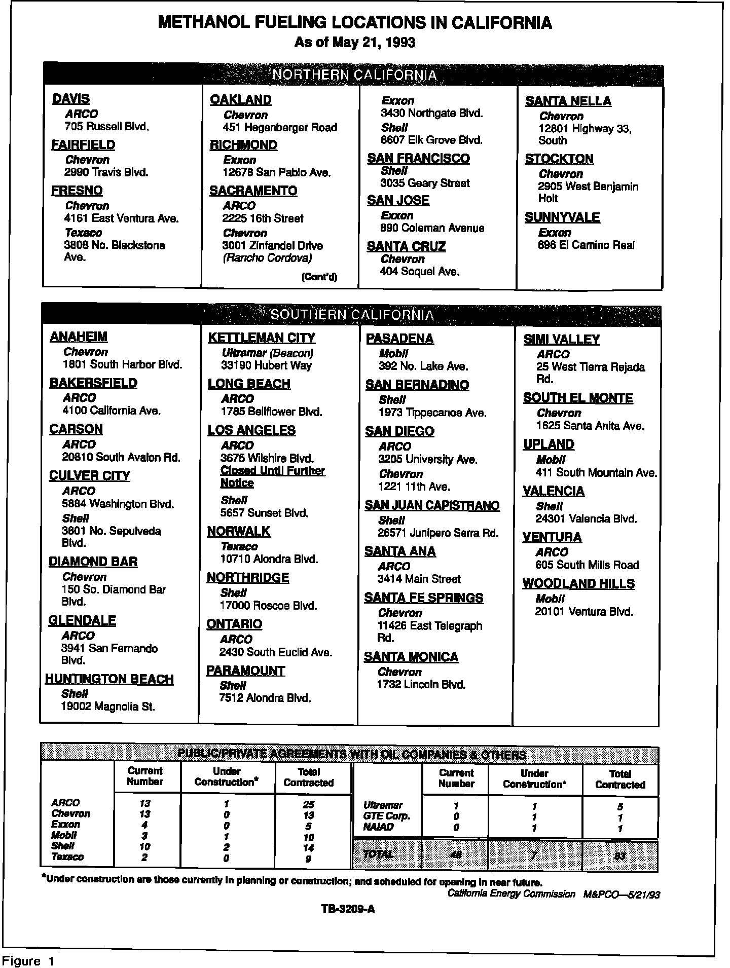 Refer to Figure 1 for methanol fueling locations in California. We will provide you with all updates we receive from the California Energy Commission.