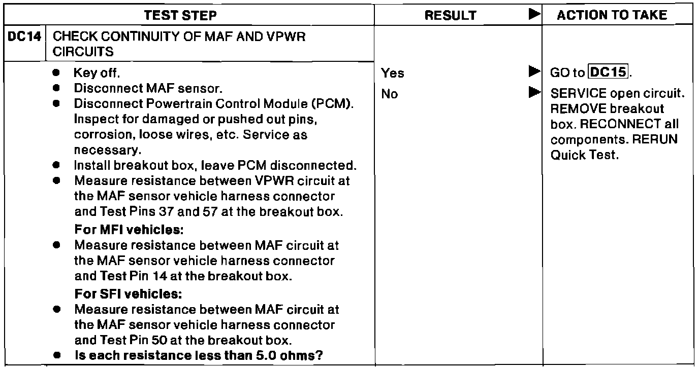 DC14 - Check Continuity of MAF and VPWR Circuits