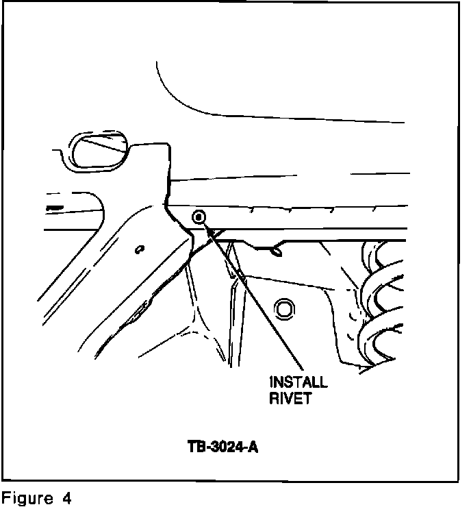 b. Drill a 1/4" (6.35 mm) hole where the three (3) thicknesses of sheet metal come together, Figure 4.