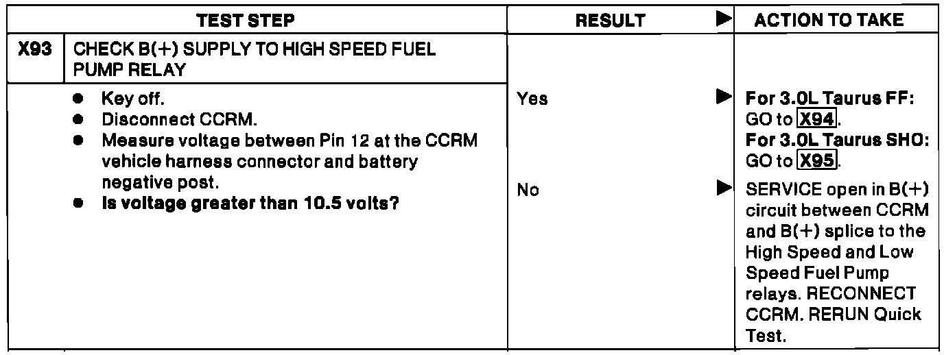 X93 - Check B+ Supply to High Speed Fuel Pump Relay