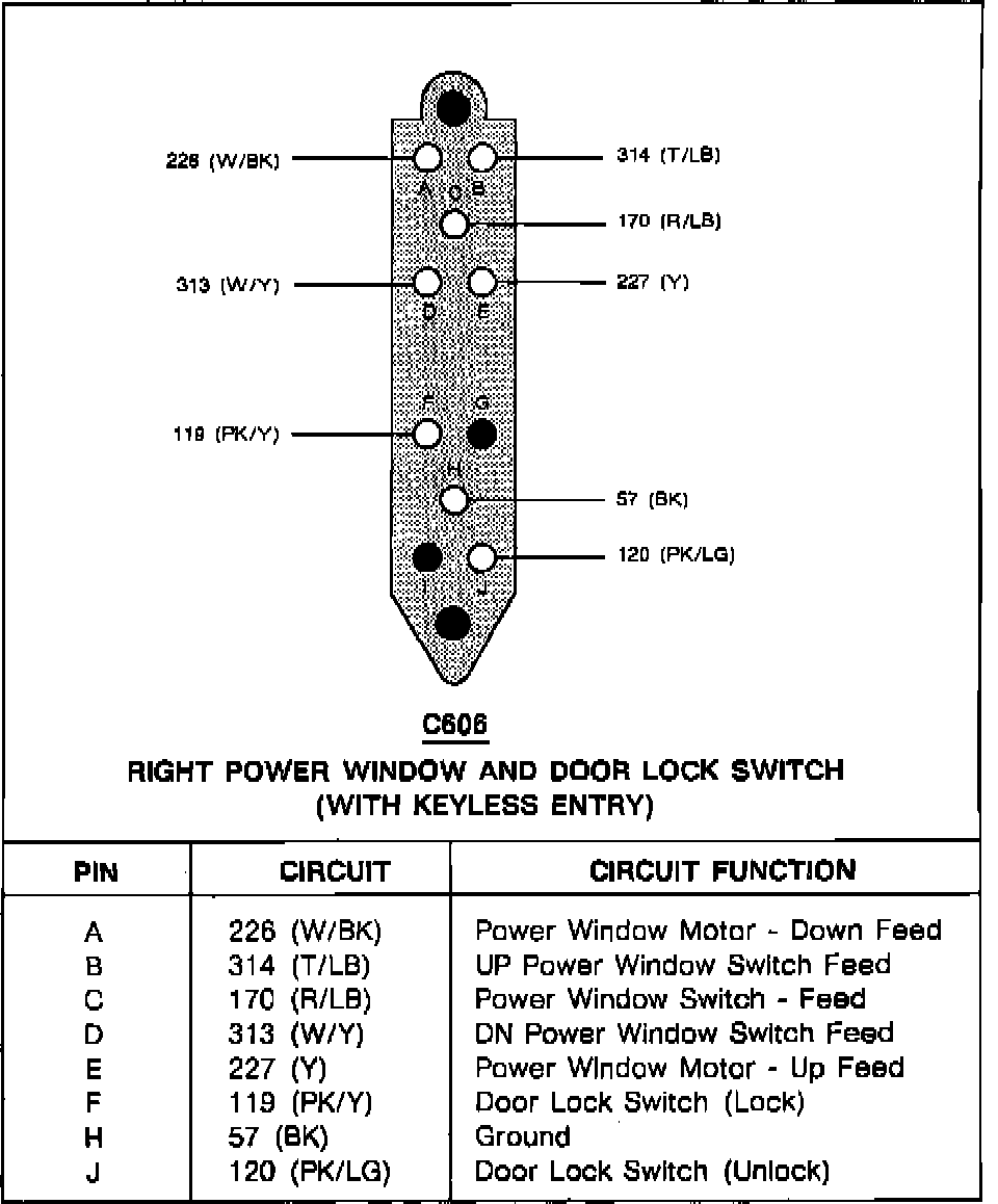 Right Power Window And Door Lock Switch (With Keyless Entry):