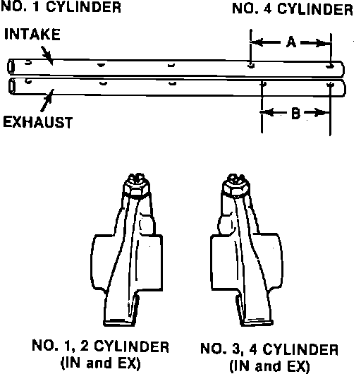 6. Assemble rocker arms and springs to rocker shaft. Rocker arms and shafts can be identified as shown.
