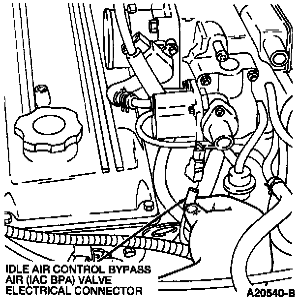 2. Drain the cooling system below the level of the Idle Air Control Bypass Air (IAC BPA) valve.