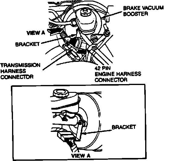 6. Remove air inlet tube and 42-pin electrical harness connector from bracket at brake vacuum booster.