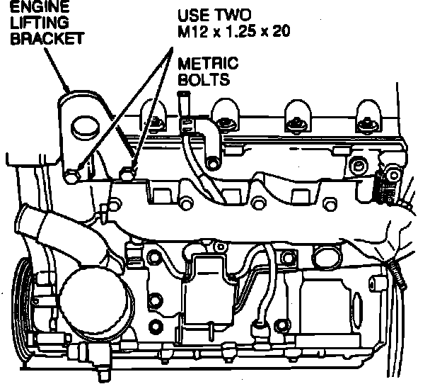 23. Install engine lift brackets, then connect suitable lift equipment.