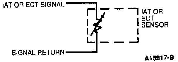 The Intake Air Temperature (IAT) and Engine Coolant Temperature (ECT) sensors change resistance in response to temperature. IAT and ECT sensor resistance decreases as the surrounding temperature increases providing a signal to the Powertrain Control Module (PCM) that indicates the temperature of either the incoming intake air or engine coolant temperature.