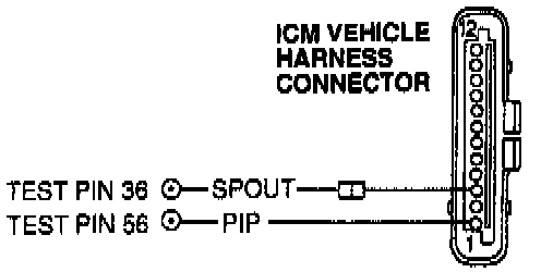 - Measure resistance between test pin 36 at the breakout box and Spark Output (SPOUT) circuit at the ICM vehicle harness connector.