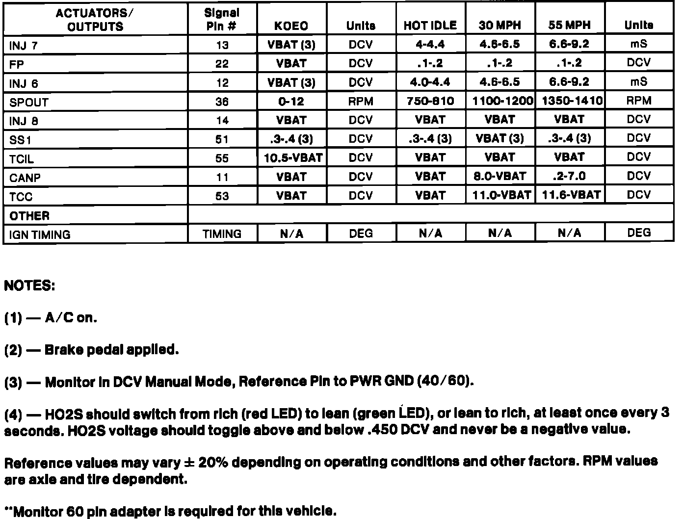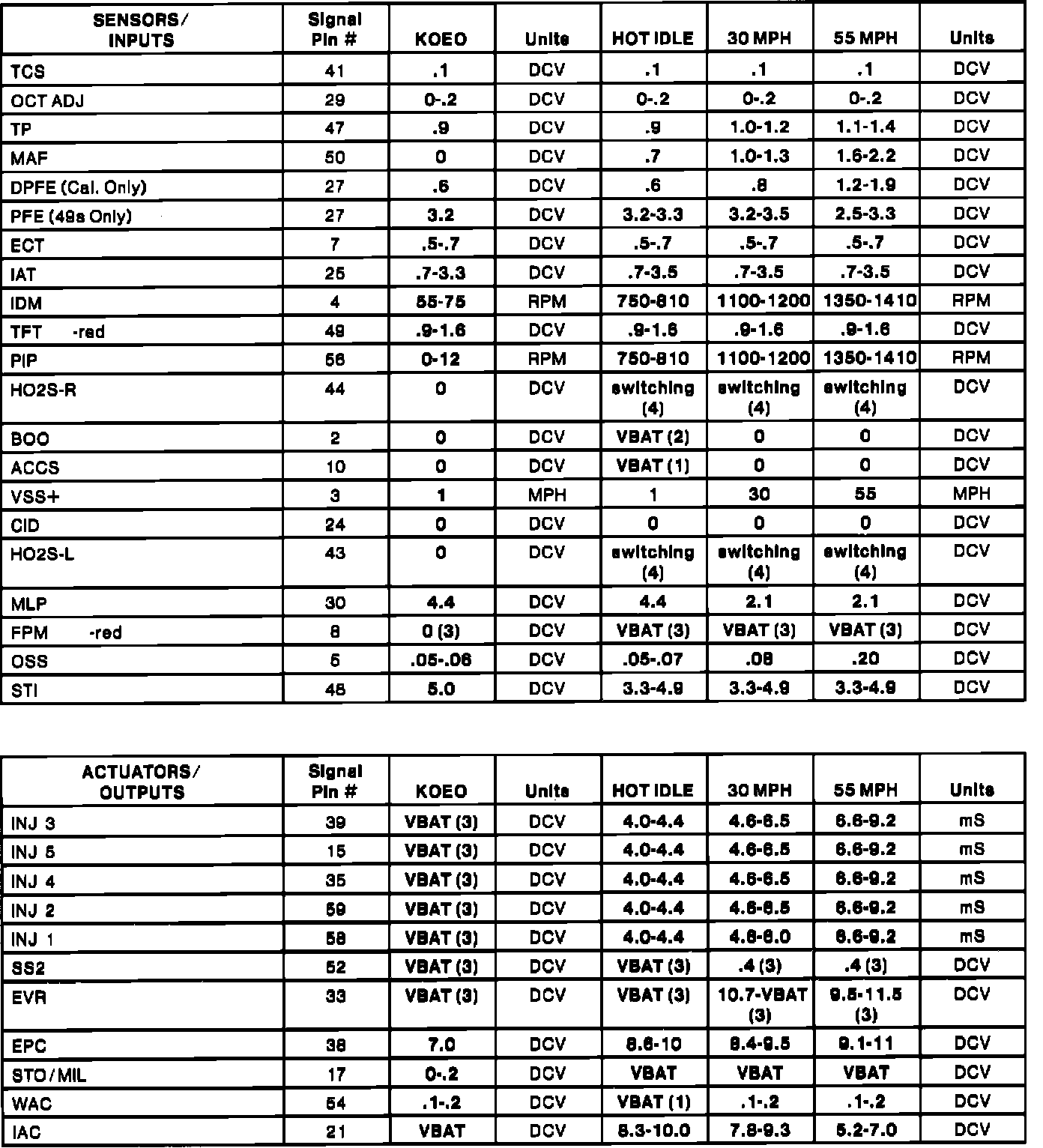 Some Electronic Engine Controls (EEC) devices such as Intake Air Temperature (IAT), Engine Coolant Temperature (ECT) are temperature dependent and values may vary. Other Values such as Idle Air Control (IAC) and Injector Pulsewidth (INJ) are calibration dependent and may vary also.