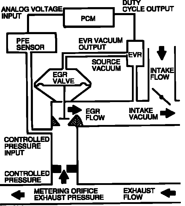 The amount of exhaust gas reintroduced and the timing of the cycle varies by calibration and is controlled by factors such as engine speed, engine vacuum, exhaust system back pressure, coolant temperature and throttle angle. All EGR valves are vacuum actuated. The vacuum diagram is on the emission decal for each calibration.