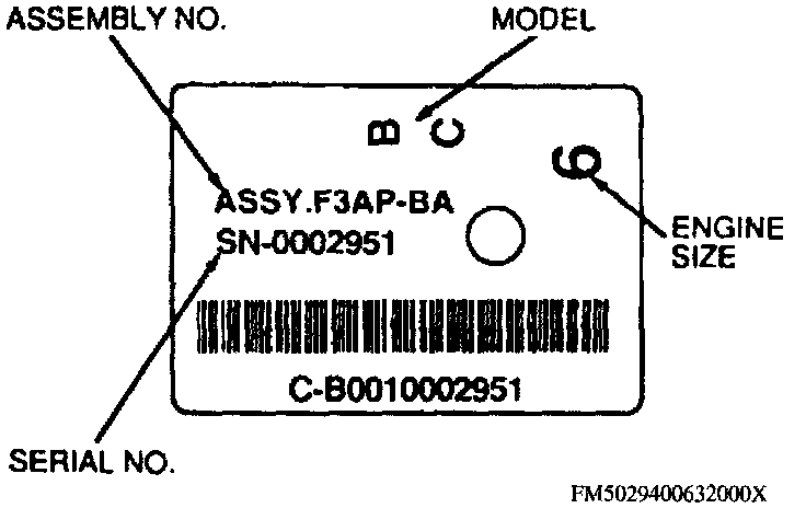 This transmission may be identified by the tag attached to the upper righthand extension housing to transmission case bolt. The tag includes model prefix and suffix, a service identification number, and a build date code. The service identification number indicates changes to service details which affect interchangeability when the transmission model is not changed. For interpretation of this number the Ford Master Parts Catalog should be consulted.
