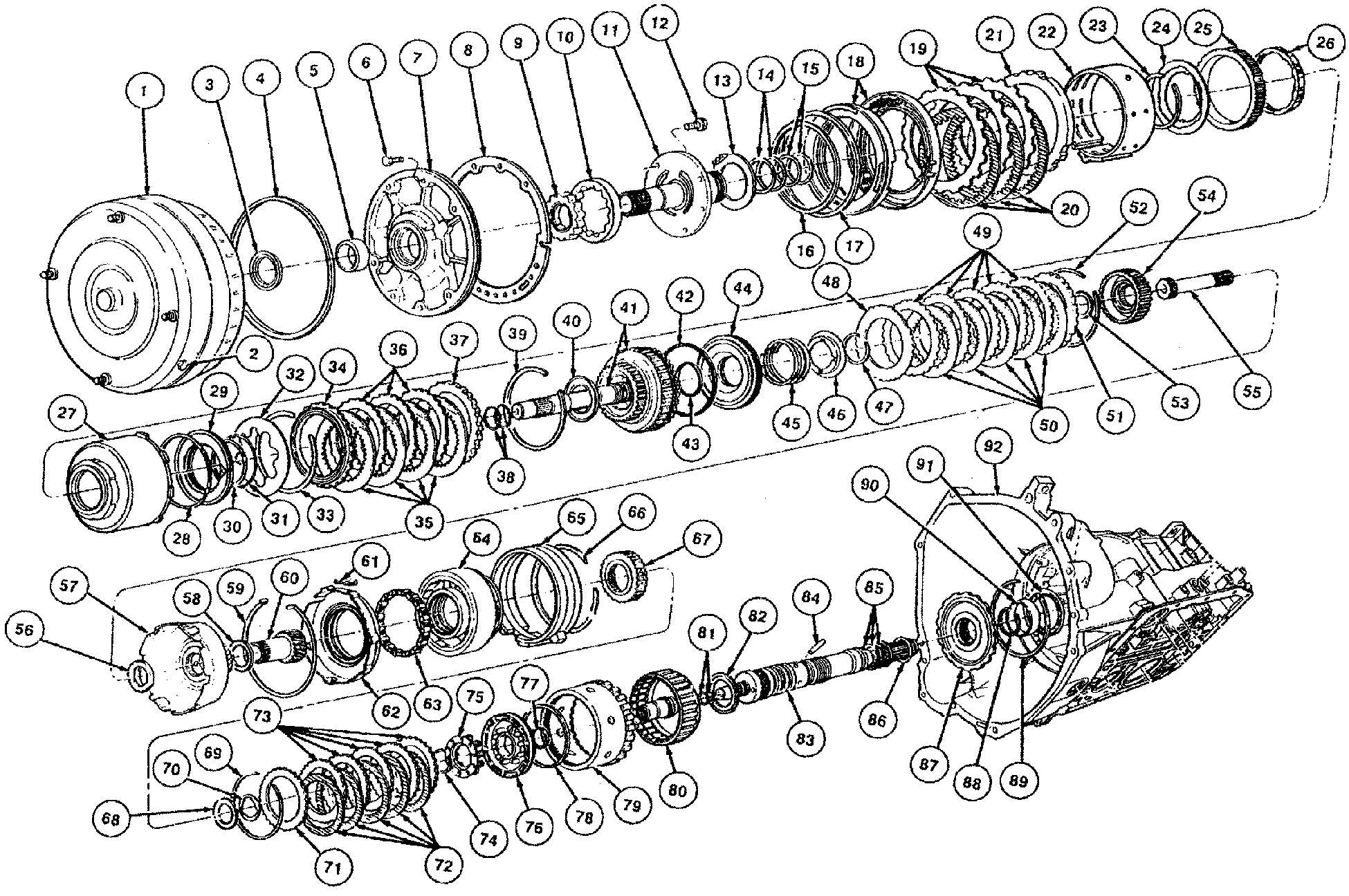 17. Install intermediate clutch pack components; pressure plate, clutch pack, and selective steel plate in that order.