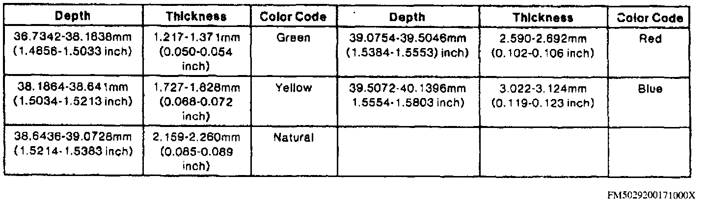 19. If average depth is not 1.634-1.646 inches, install correct separator plate and recheck clearance. Selective steel separator plates are available in inch thicknesses of 0.067-0.071 inch, 0.077-0.081 inch, 0.087-0.091 inch and 0.097-0.101 inch.