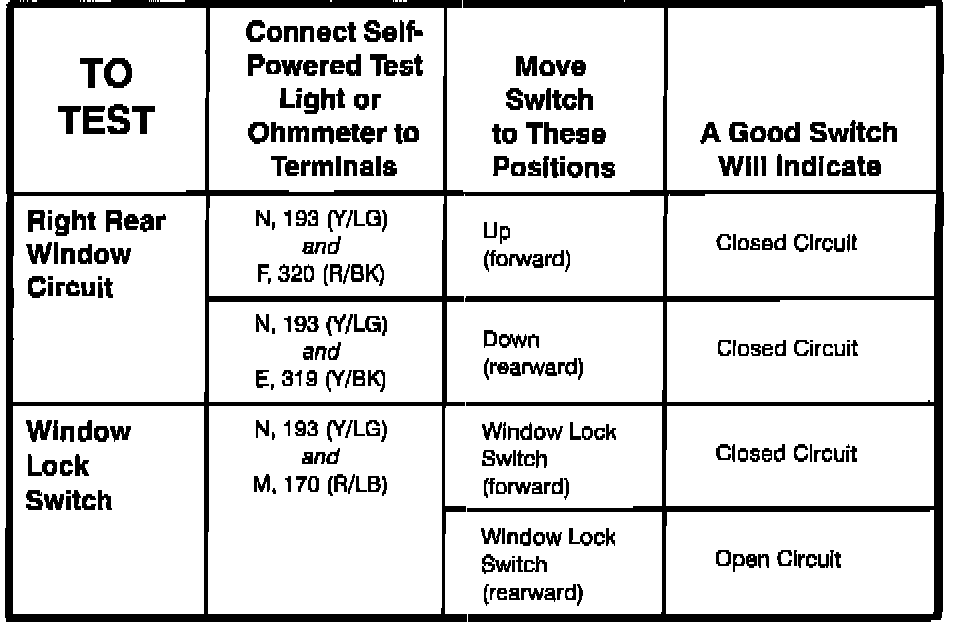 Component Testing Procedure-Window Circuits: