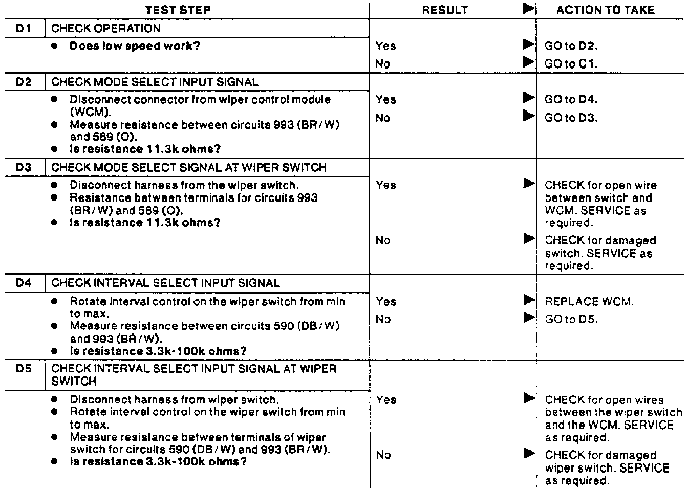 Test D: Windsheild Wipers Inoperative At Low Speed Interval.:
