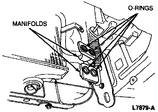 5. Remove the manifold bolts. Immediately plug all compressor and manifold openings to keep moisture out of the system.