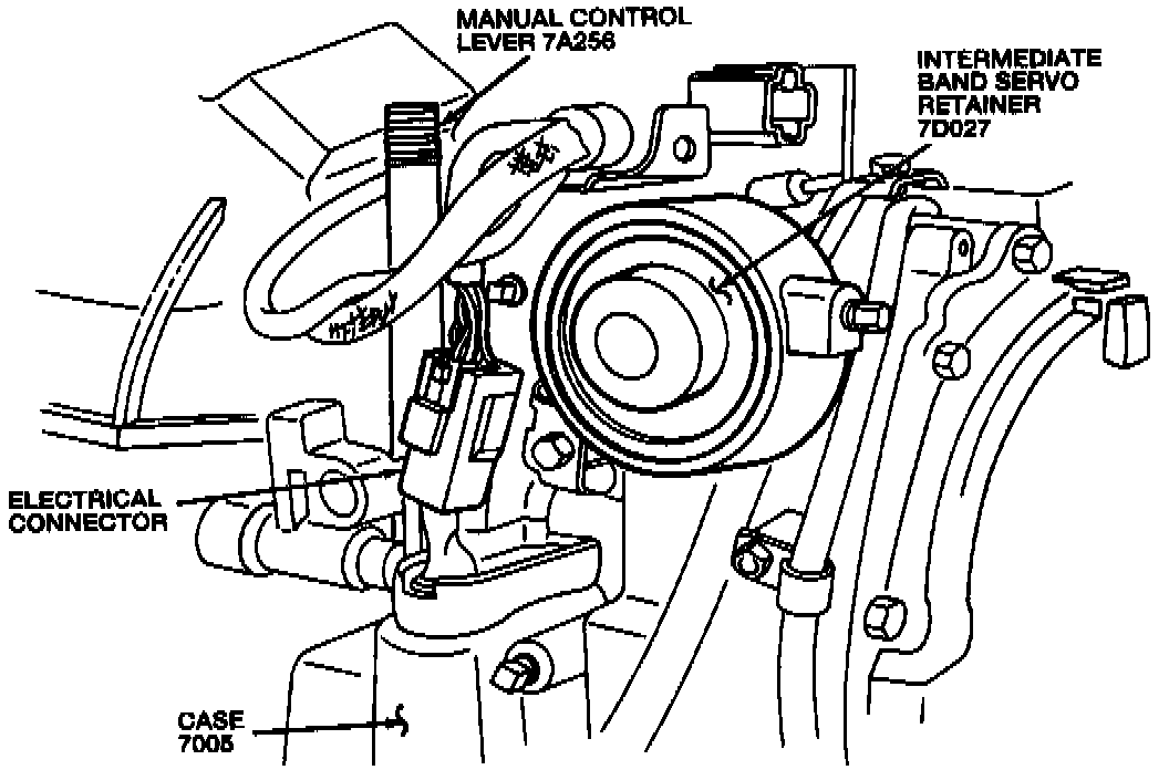 3. Remove the manual control lever nut securing the park actuator support to the manual control lever.