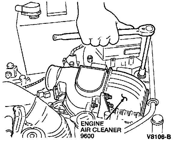 3. Remove the engine air cleaner bolts and nut. Remove the Engine Air Cleaner (9600).