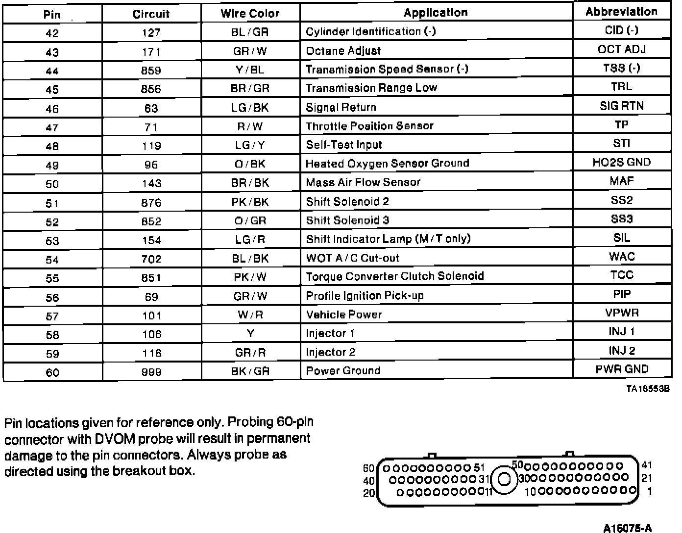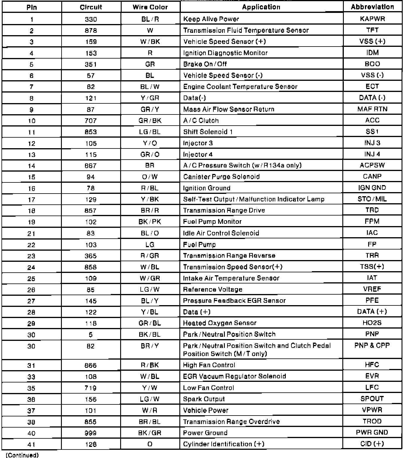 Powertrain Control Module (PCM) Connector Pin Usage: