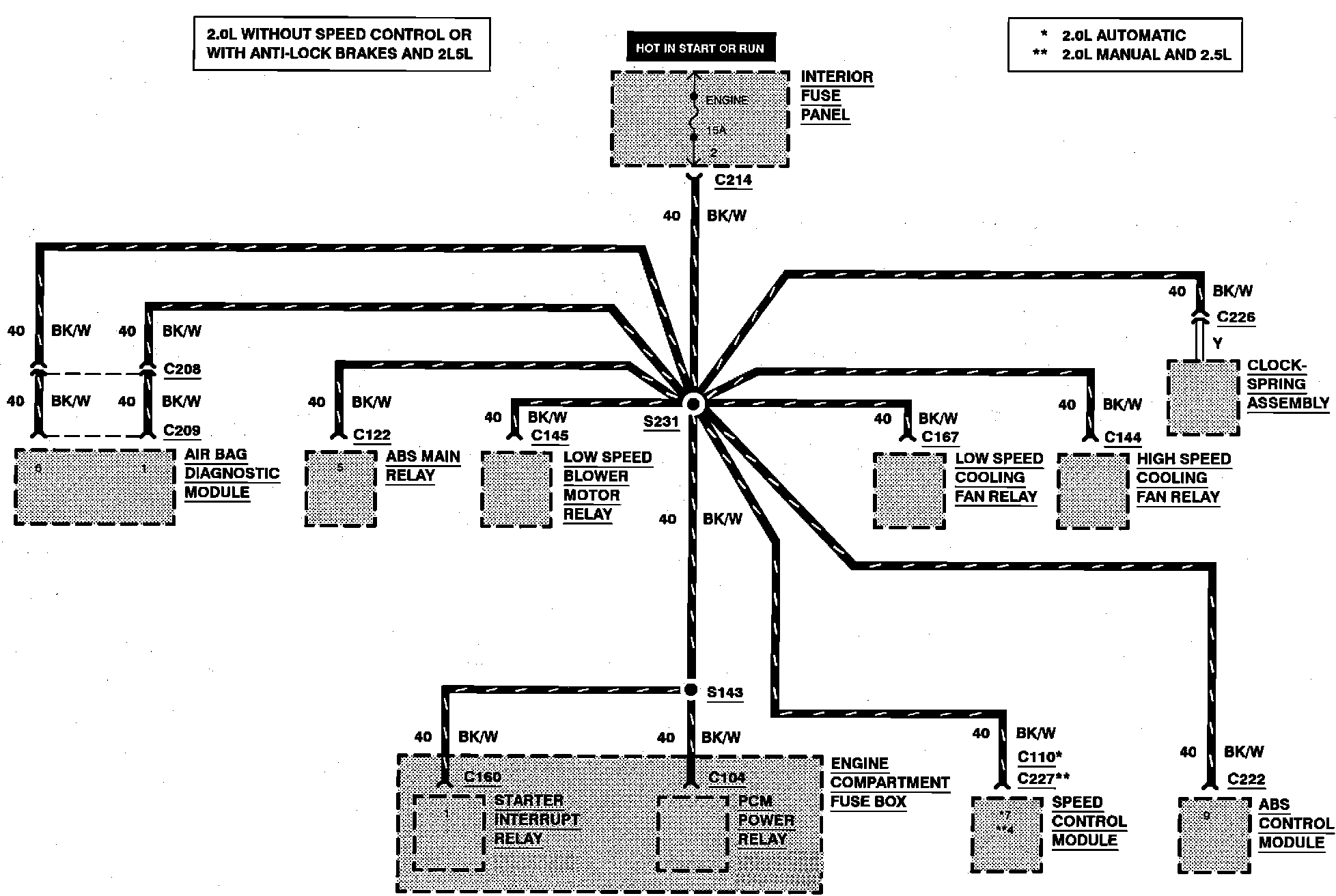 Fuse ENGINE - Protects the following Circuits :- Air Bag Restraint System