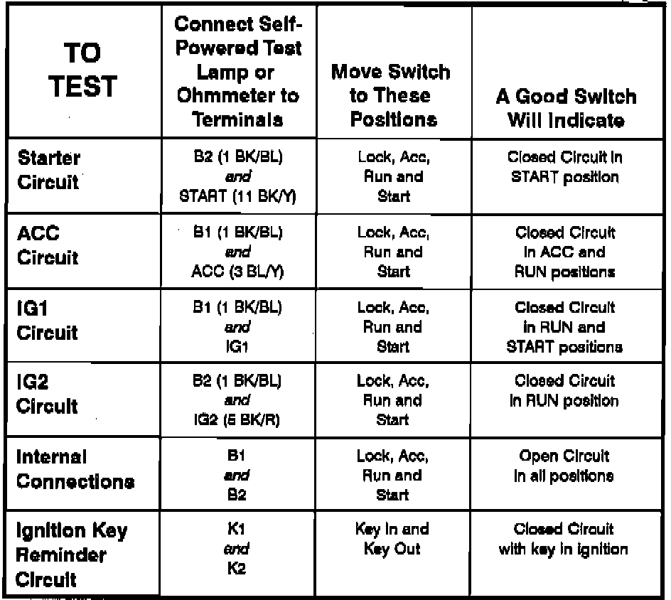 Ignition Switch: Testing and Inspection