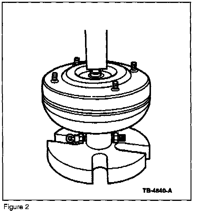 3. Place the torque converter with the tool installed into press and apply enough force to seal tool into the converter. Figure 2.