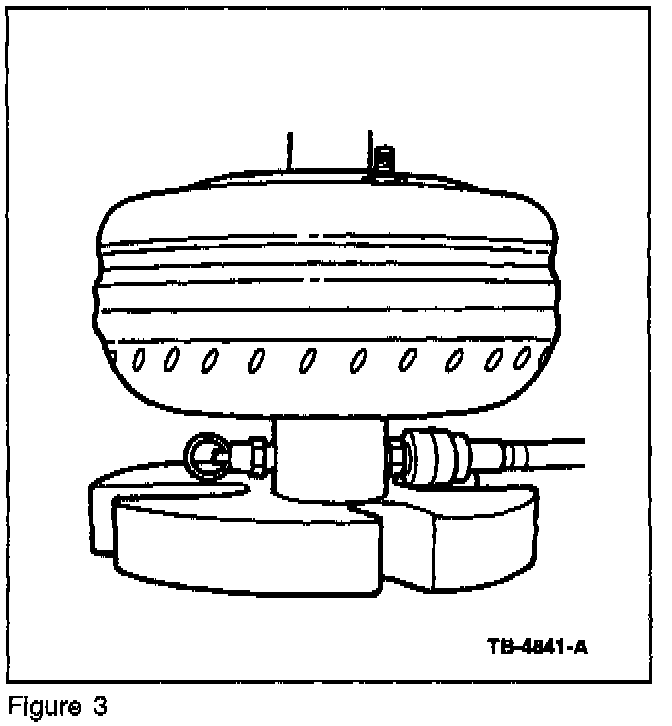 5. With air pressure applied to the valve, inspect for any air leaks at the studs, seams and pilot hub. A soap bubble solution may be applied around those areas to aid in diagnosis. If any leaks are present, replace the converter.