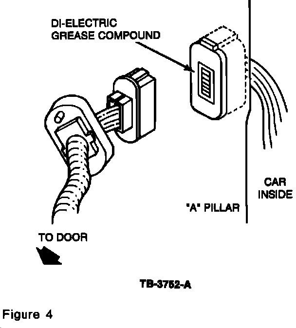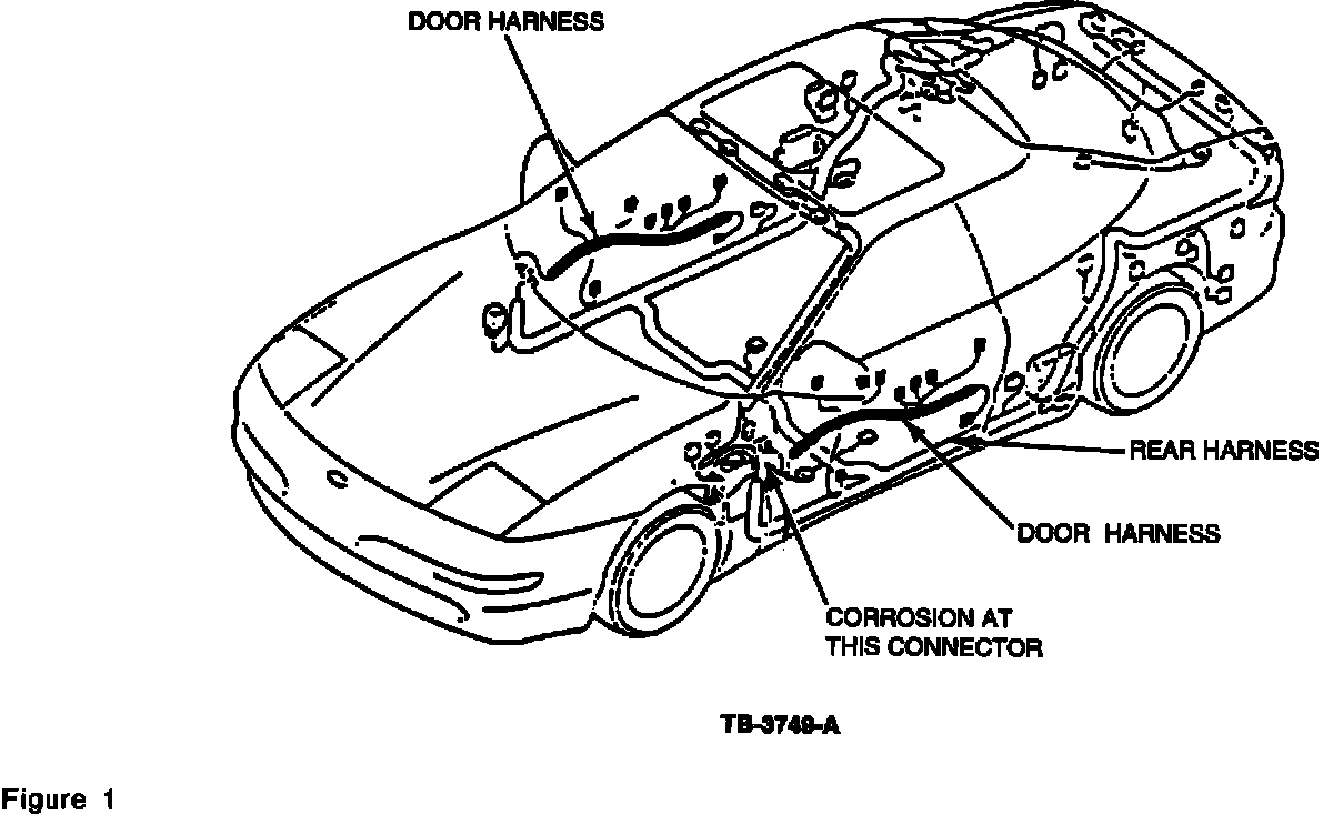 Some vehicles may exhibit a loss of some or all power accessories to either front door. This can occur on some vehicles if the door electrical wiring harnesses are corroded at the connector located in the "A" pillar after extensive accumulation of mileage. Electrical systems such as power windows, power door locks and power mirrors may malfunction. This occurs because water enters the connector.