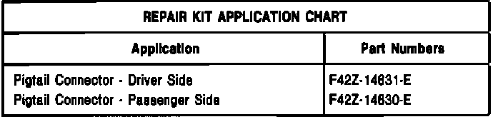 3. Repair the harness by using the appropriate pigtail from the Repair Kit Application Chart. If only one or two wire terminals are corroded and the connector shell does not have any damage, pull out the damaged wire terminals from the pigtail and replace the defective wires with new ones.