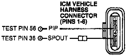 - Measure resistance between test pin 36 at the breakout box and Spark Output (SPOUT) circuit at the ICM vehicle harness connector.