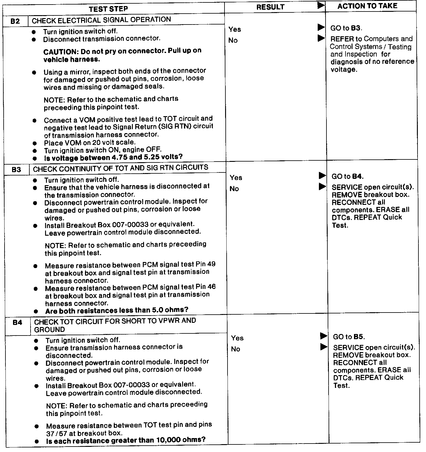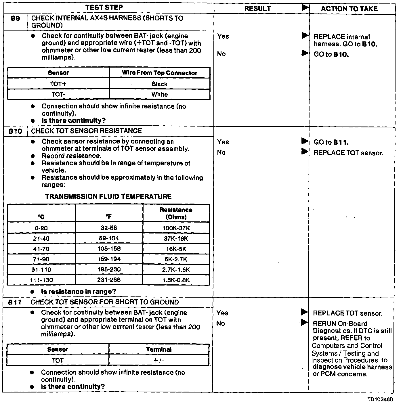 This Pinpoint Test is designed to diagnose the transmission oil temperature (TOT) sensor electrical system ONLY.