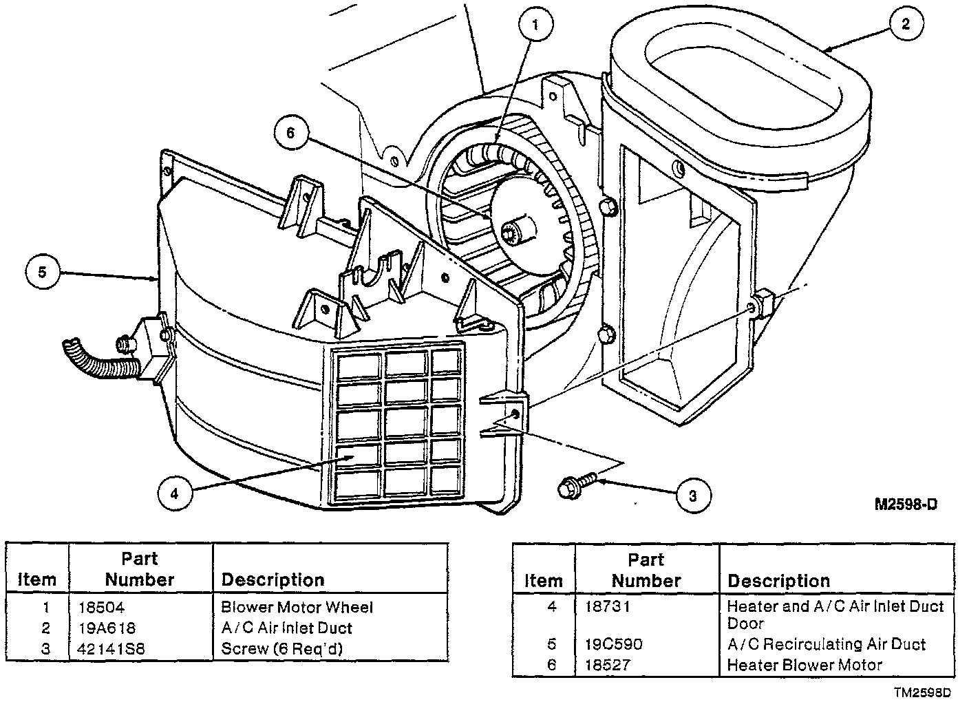 2. Install the six screws retaining the A/C recirculating air duct to the A/C evaporator housing.