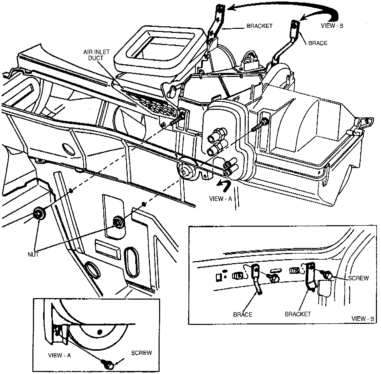 13. Remove air inlet duct from evaporator case (four screws).