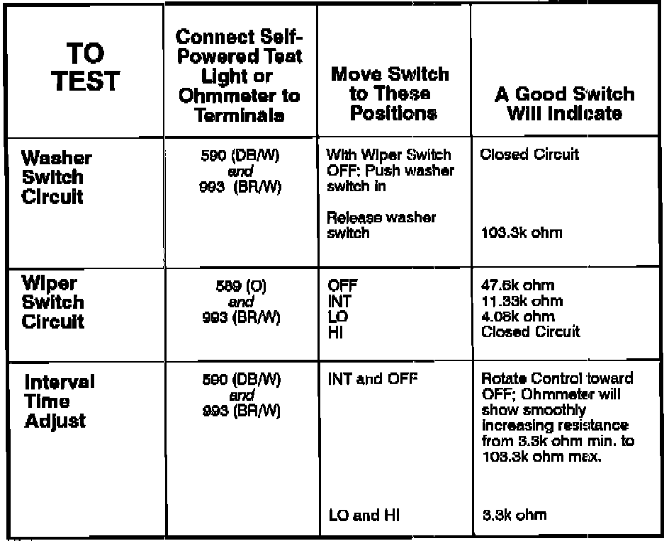 Wiper Switch: Testing and Inspection