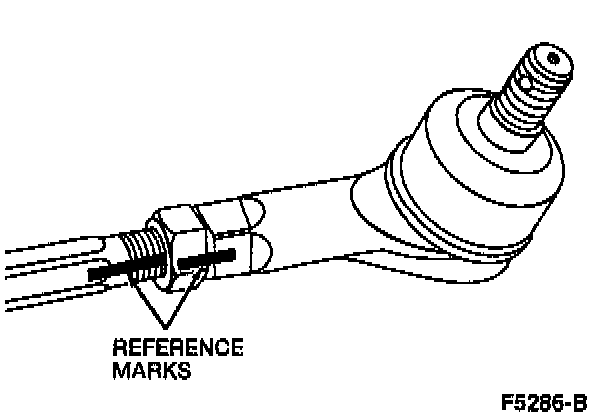 3. Mark relationship between tie rods, tie rod ends and jam nuts, then loosen tie rod boot clamps to prevent twisting or damage to boots.