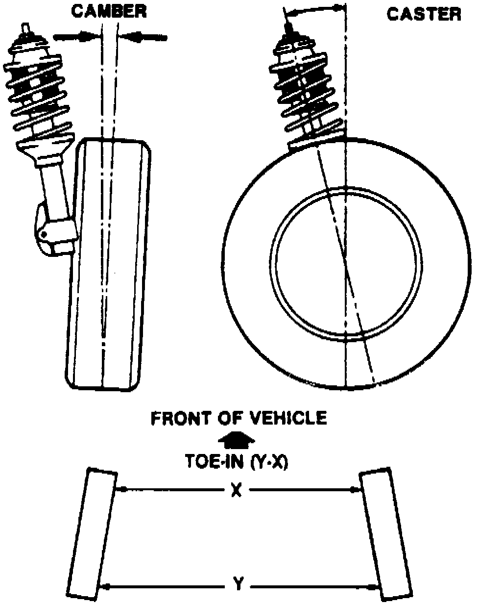 Caster is not adjustable. If caster angles are not within specification, check for damaged or bent suspension components, deteriorated bushings, or distorted body mounting points.