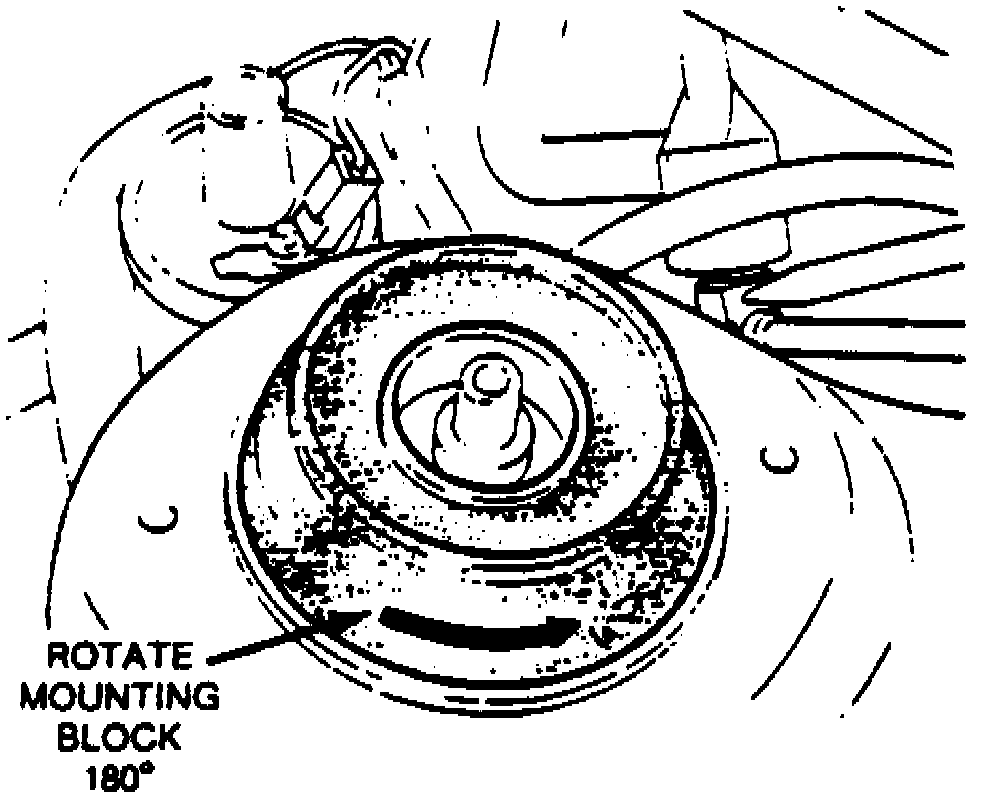 3. Lower strut sufficiently so that mounting studs clear tower, then rotate mounting block 180° as necessary.