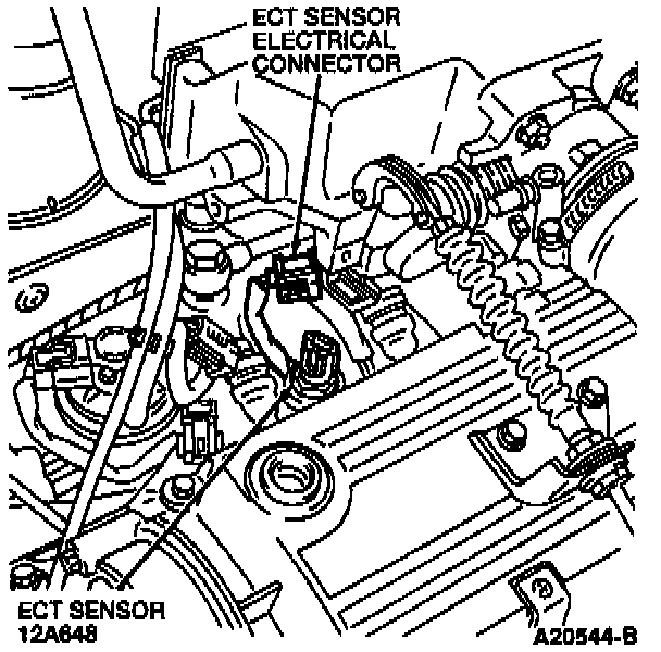 2. Drain the cooling system below the level of the Engine Coolant Temperature (ECT) sensor.