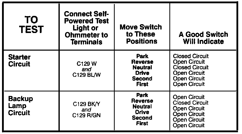 Transmission Range Switch - Component Testing Procedure: