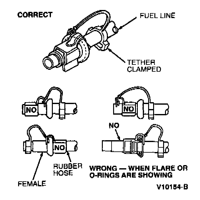 5. Ensure coupling engagement by pulling on the fitting and visually checking it to be sure the garter spring is over the flared end of the female fitting.
