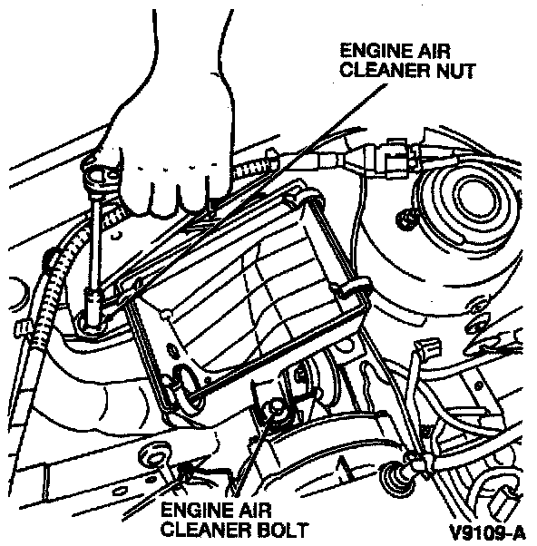 8. Remove the upper half of the engine air cleaner (9600) and the air cleaner element (96O1).