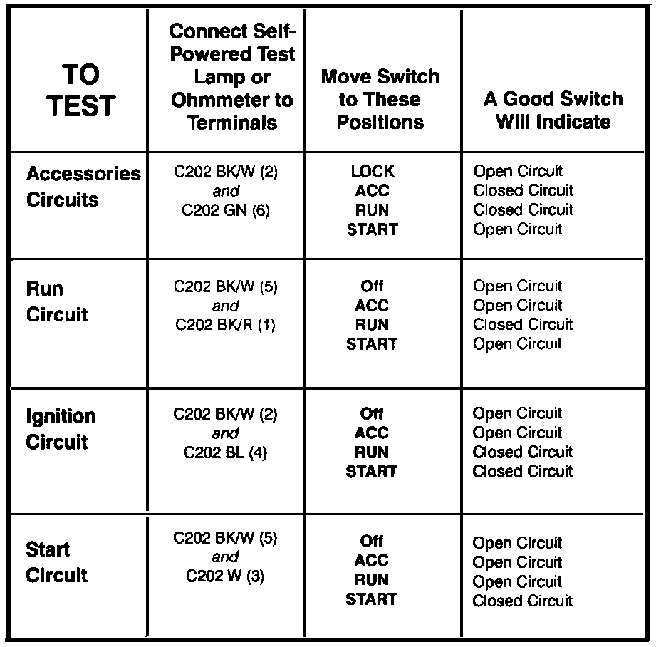 Ignition Switch - Component Testing Procedure: