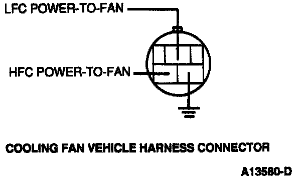 - Measure voltage between LFC Power-To-Fan circuit at the cooling fan vehicle harness connector and battery negative post.