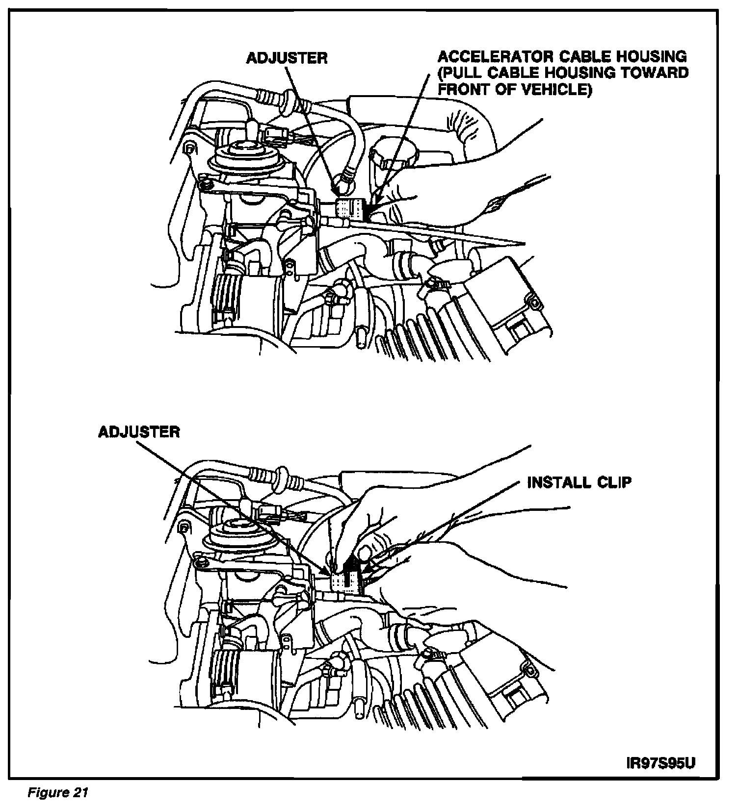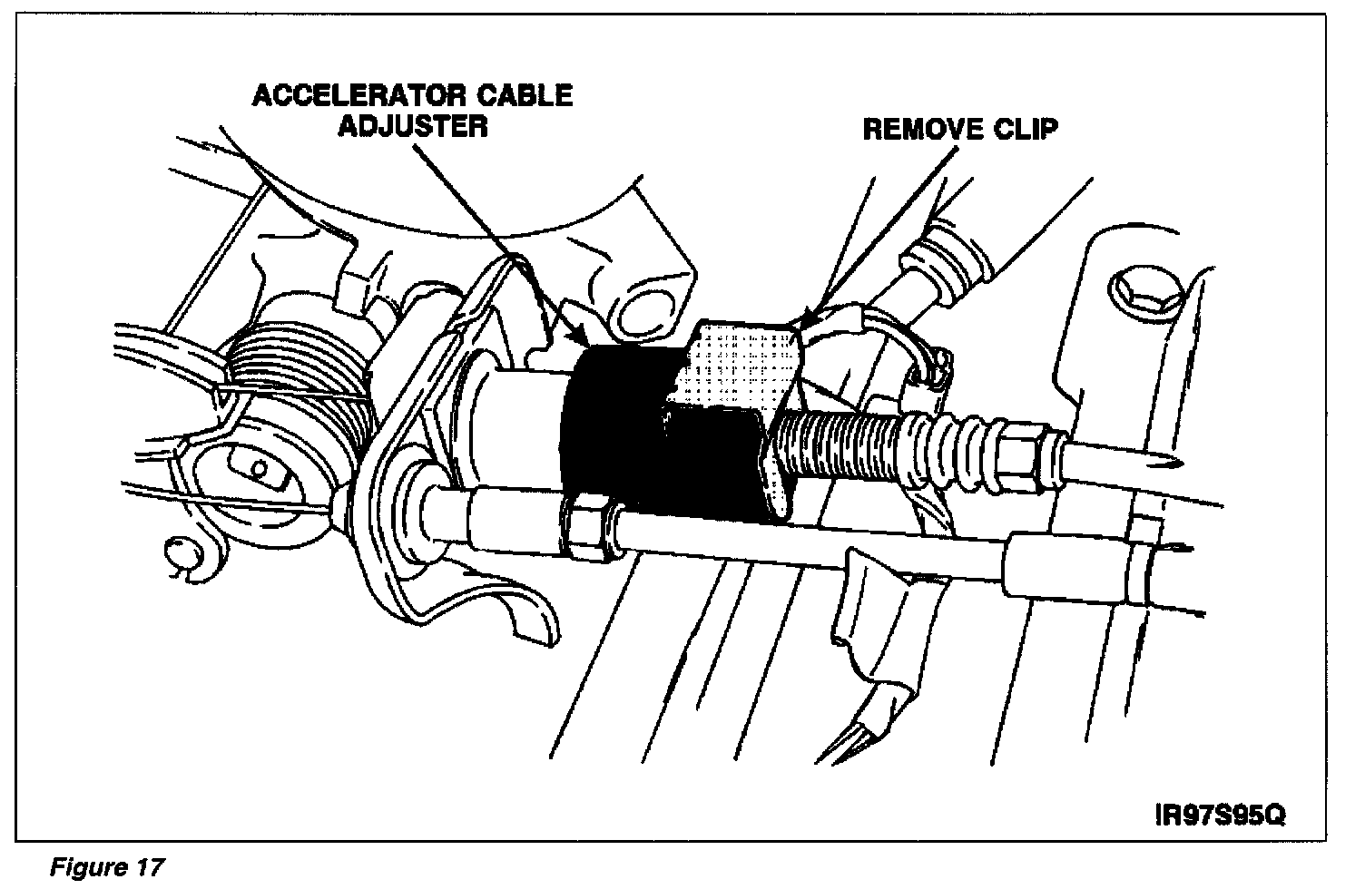 ^ Make sure clips from both accelerator cable adjusters are removed. See Figure 17.