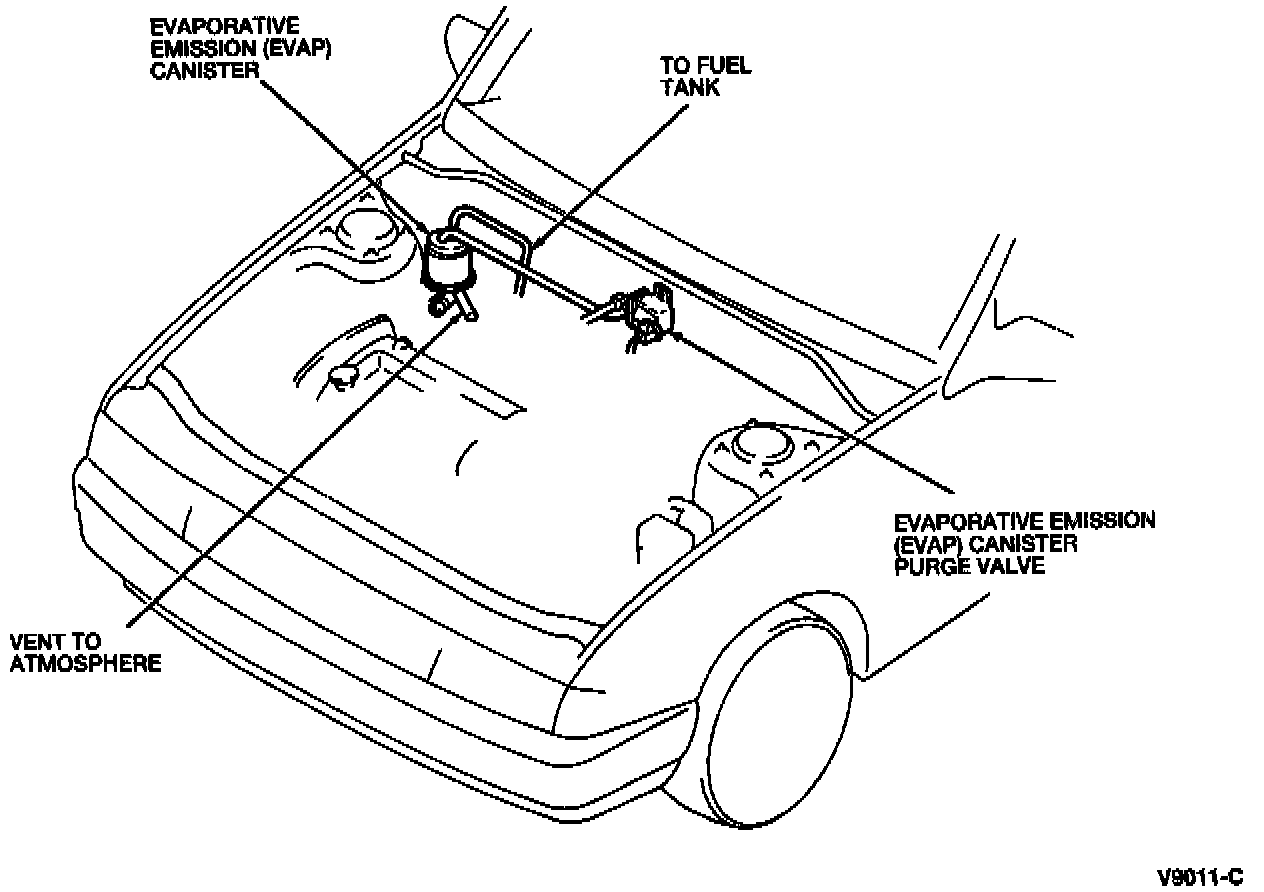 PURPOSEEvaporative emission system prevents escape of fuel vapors to atmosphere under hot soak and engine off conditions by storing these vapors in an Evaporative Emissions (EVAP) canister. System also controls purging of stored vapors from charcoal canister to engine for burning.