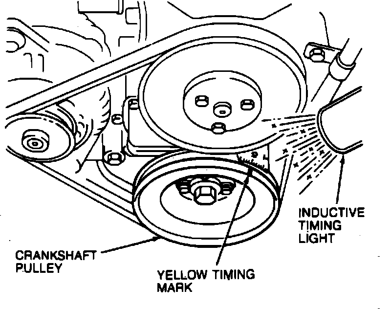 8. If marks are not aligned, loosen mounting bolts and turn distributor until timing is within specification.
